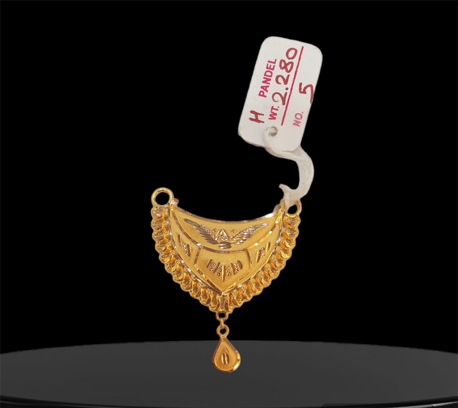 A U-shaped pandel is a graceful pendant crafted from fine gold, characterized by its elegant and streamlined design. The U-shape offers a modern interpretation, blending simplicity with sophistication. Adorned with intricate patterns or minimalist embellishments, it exudes understated elegance and versatility, suitable for both everyday wear and special occasions. This pandel style symbolizes contemporary refinement while retaining the timeless allure of gold craftsmanship, making it a coveted addition to any jewelry collection.